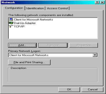 need to add "Client for Microsoft Networks", "DialUp Adapter" or "TCP/IP"